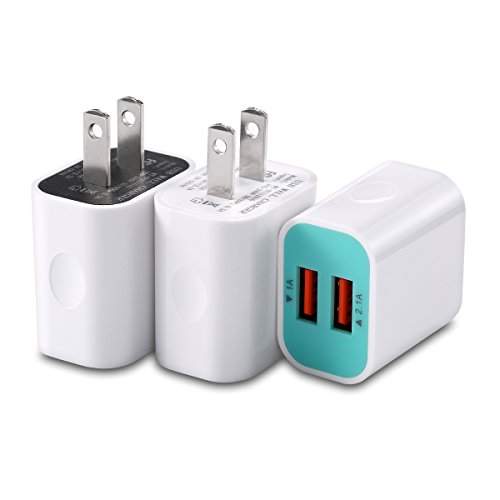 WITPRO Wall Charger 2.1A/5V (FCC Approval) 10.5W Dual USB Port Travel Home Power Adapter Plug for iPhone 7 Plus SE 6S 5S iPad, Samsung Galaxy S7 S6 Edge Note, HTC, LG, Google, Android More (Pack of 3) - Black,White,Blue