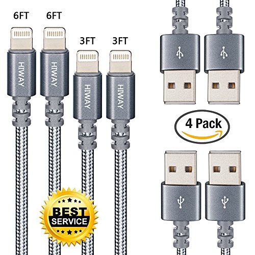 Hiway 4PACK (3FT & 6ft) Nylon Braided Charging Cable Cord Lightning to USB Cable Charger Compatible with iPhone 7/ 7 Plus/6/6s/6 plus/6s plus/ 5s/5c, iPad, iPod and More (grey)