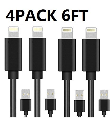 4Pack 6ft iphone Cable iphone Charger Nylon Braided Charging Cord for iPhone7 SE/6/6s/plus - Black