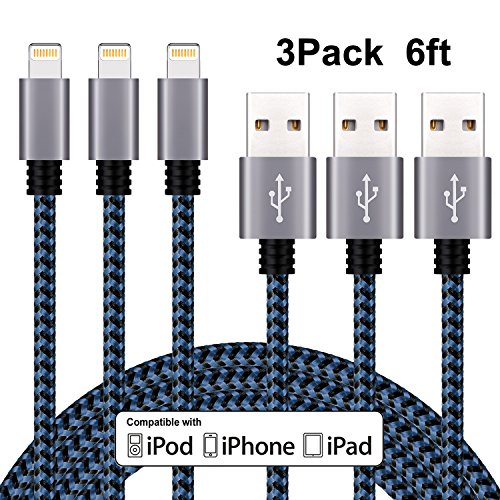 EverDigi iPhone Cable, 3Pack 6FT 8pin to USB Charging CABLE - Black&Blue