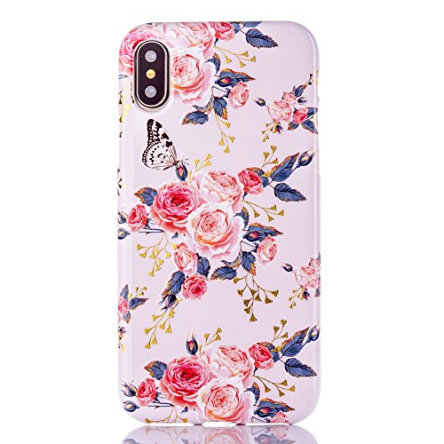iPhone X Case for Girls,Xaviness Vintage Pattern Case [Floral Cover][High Impact][Noctilucent] Soft TPU Bumper Cushion for iPhone X (2017)