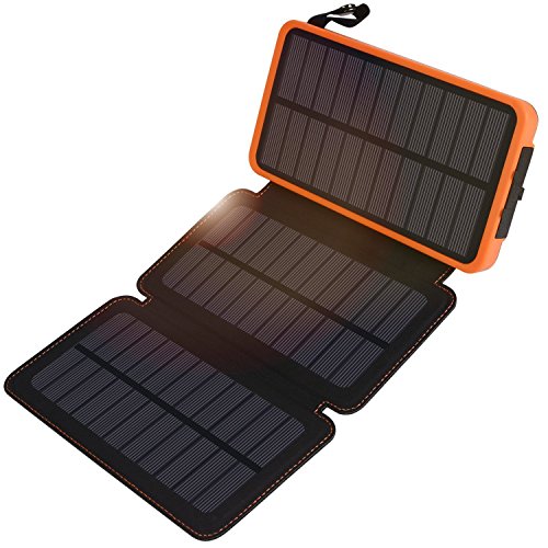 2.1A Fast Charging: 10000mAh solar charger equipped with 2 USB ports, which can fast charge an iphone and an ipad(two device)simultaneously. Smart IC chip technology detects all connected devices and distributes optimal current to your devices. The charger will stop to charge your phone automatically after the phone was fully charged, protect your device from overheating and overcharging.