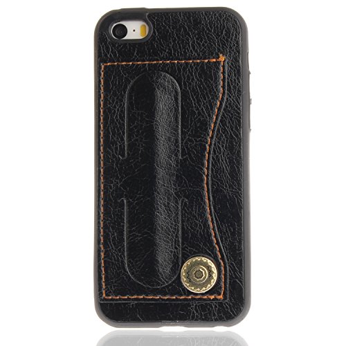iPhone 5s Case, SsHhUu PU Leather Shock-Absorption Case Classic Retro Case Hidden Metal Phone Stand Credit Card Slot for Apple iPhone 5 / 5s / SE (4.0")