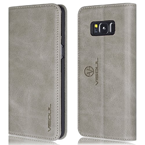 Galaxy S8 Plus Case, VISOUL Genuine Leather Wallet Case with Stand and 3 Card Slots Case, Magnetic Closure Case for Samsung Galaxy S8+ (2017)