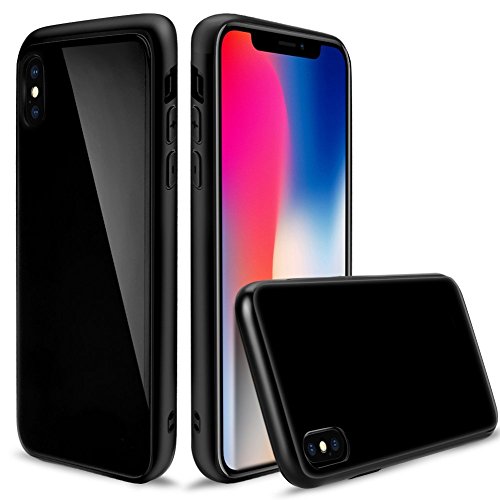 iPhone X Case, Basse Shock- Absorption TPU & Tempered Glass Back Protective Cover Case for iPhone X – Black
