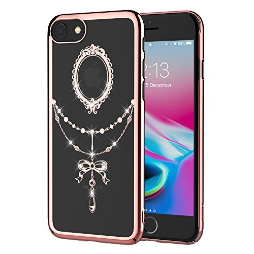 iPhone 8 Case, iPhone7 Case, Clear Case with Swarovski Crystals by ICONFLANG, Slim Case Compatible with Wireless Charging Shockproof Anti-Scratch Finish, Cover for iPhone 8 Cover for iPhone 7