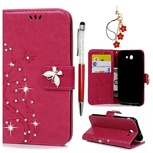 J3 Case, Express Prime Case, Amp Prime Case, MOLLYCOOCLE Bling Crystal Diamonds PU Leather Wallet Embossed Florals Kickstand Magnetic Flip Case for Samsung Galaxy J3 / Express Prime / Amp Prime -Blue