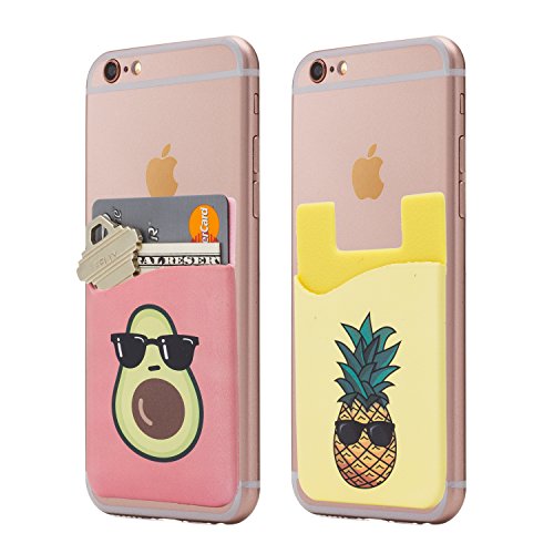 (Two) Avocado and Pineapple cell phone stick on wallet card holder phone pocket for iPhone, Android and all smartphones.