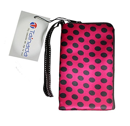 Tainada WPP04PK Smartphone Wristlet Pouch, Tainada Dual Slots Zipper Purse Water-Repellent Bag for iPhone 7/6S/6 Plus, Samsung Galaxy Note 5/4 and More - Black Polka Dots - Pink