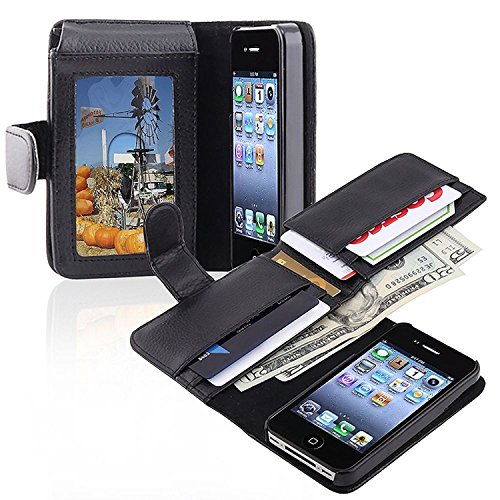 Insten Leather Case with Wallet for Apple iPhone 4/4S - Retail Packaging - Black