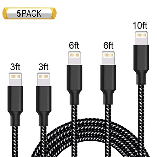 IPhone Charger Lightning Cable - 5Pack [ 3FT 3FT 6FT 6FT 10FT ] Extra Long Nylon Braided iPhone Charger Cable Lightning to USB Charger Cable for iPhone X/8/8Plus/7/7Plus/6/6Plus/6s/6sPlus