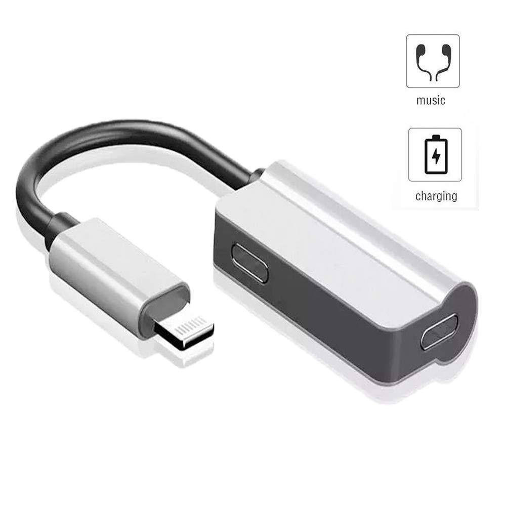 Headphones Audio Charging Socket Distributor, Headphone Adapter Compatible with iPhone 7/7 Plus / 8/8 Plus/X and iPad, Support for iOS 11.3 or Above (Silver)