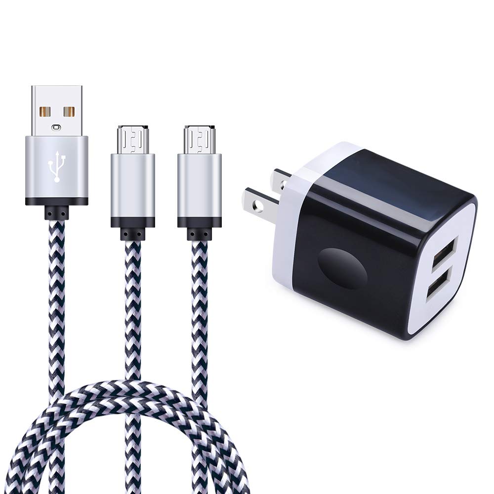Android Charger, Ououdee 2-Pack 6FT Braided Micro USB Cable with 2.1Amp USB Wall Charger Plug Charging Block Cubes