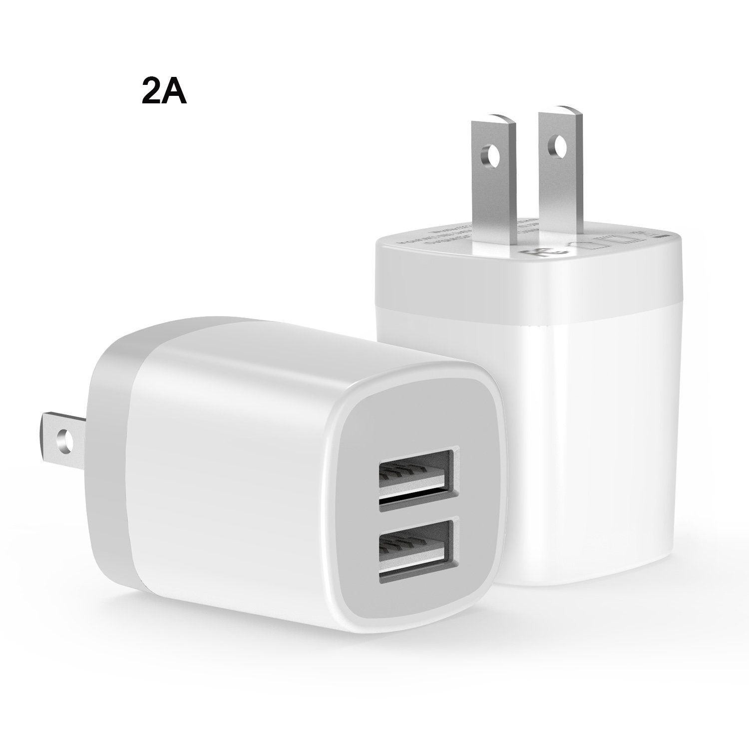 USB Wall Charger, Charger Adapter, 2-Pack 2 Amp Dual Port Quick Charger Plug Cube for iPhone 7/6S/6S Plus/6 Plus/6/5S/5, Samsung Galaxy S7/S6/S5 Edge, LG, HTC, Huawei, Moto, Kindle and More