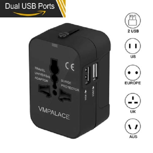 Travel Adapter, VMPALACE Worldwide All in One Universal Power Converters Wall AC Power Plug Adapter Power Plug Wall Charger with Dual USB Charging Ports for USA EU UK AUS Cell phone laptop